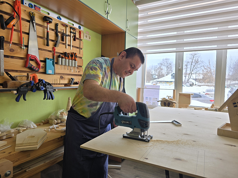 В мастерских занимались мыловарением, а также пробовали себя в других направлениях. Дмитрий, кроме столярного дела, с интересом работал с глиной в керамической мастерской. Елена осваивала полиграфию и сделала большие успехи в швейной мастерской — она научилась шить на швейной машинке, и, конечно, этому очень радовалась.