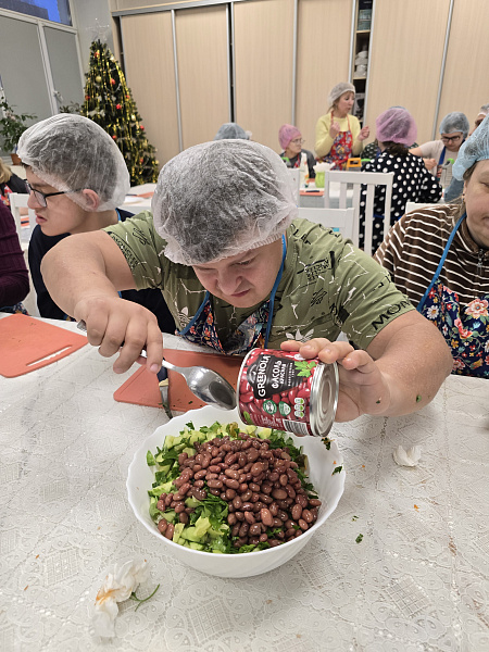 После знакомства состоялся настоящий праздник кулинарии! Мы провели гибридный мастер-класс по приготовлению вкуснейшего салата «Околица». Ребята и гости с энтузиазмом нарезали овощи, смешивали ингредиенты и осваивали новые кулинарные навыки. Кто-то уже был профи, а кто-то только учился этому нехитрому, но такому важному делу!